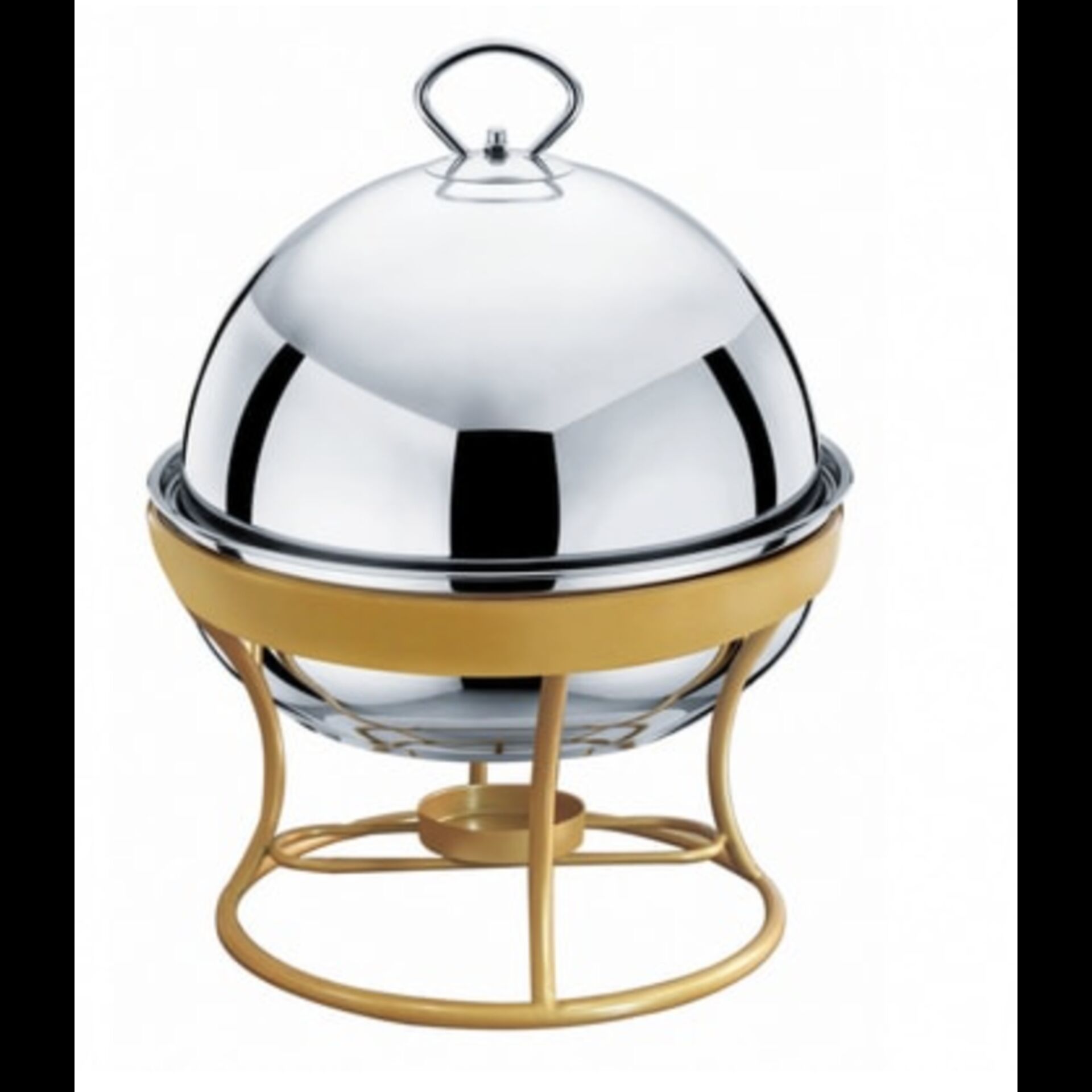 Apportez une touche de raffinement à vos réceptions avec ce chafing dish rond de 2,5 L, pensé pour sublimer vos buffets et tables de service. Son design élégant en inox associé à un support doré crée une esthétique à la fois moderne et sophistiquée, idéale pour les événements où chaque détail compte.