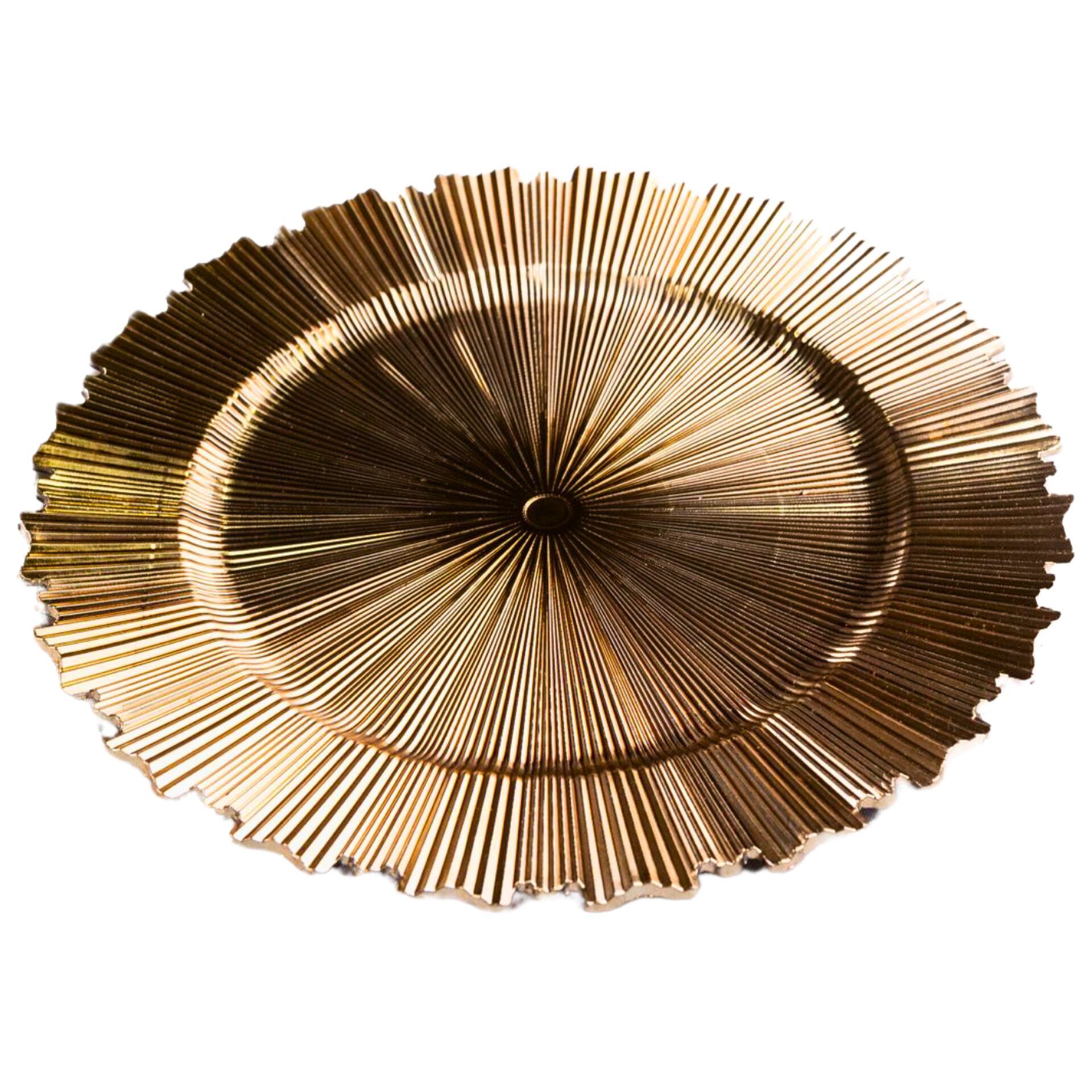 Dessous de plat Victoire avec effet métal doré et brillance raffinée. Parfait en support d’assiette ou touche décorative, il valorise les tables élégantes lors de mariages et événements professionnels.