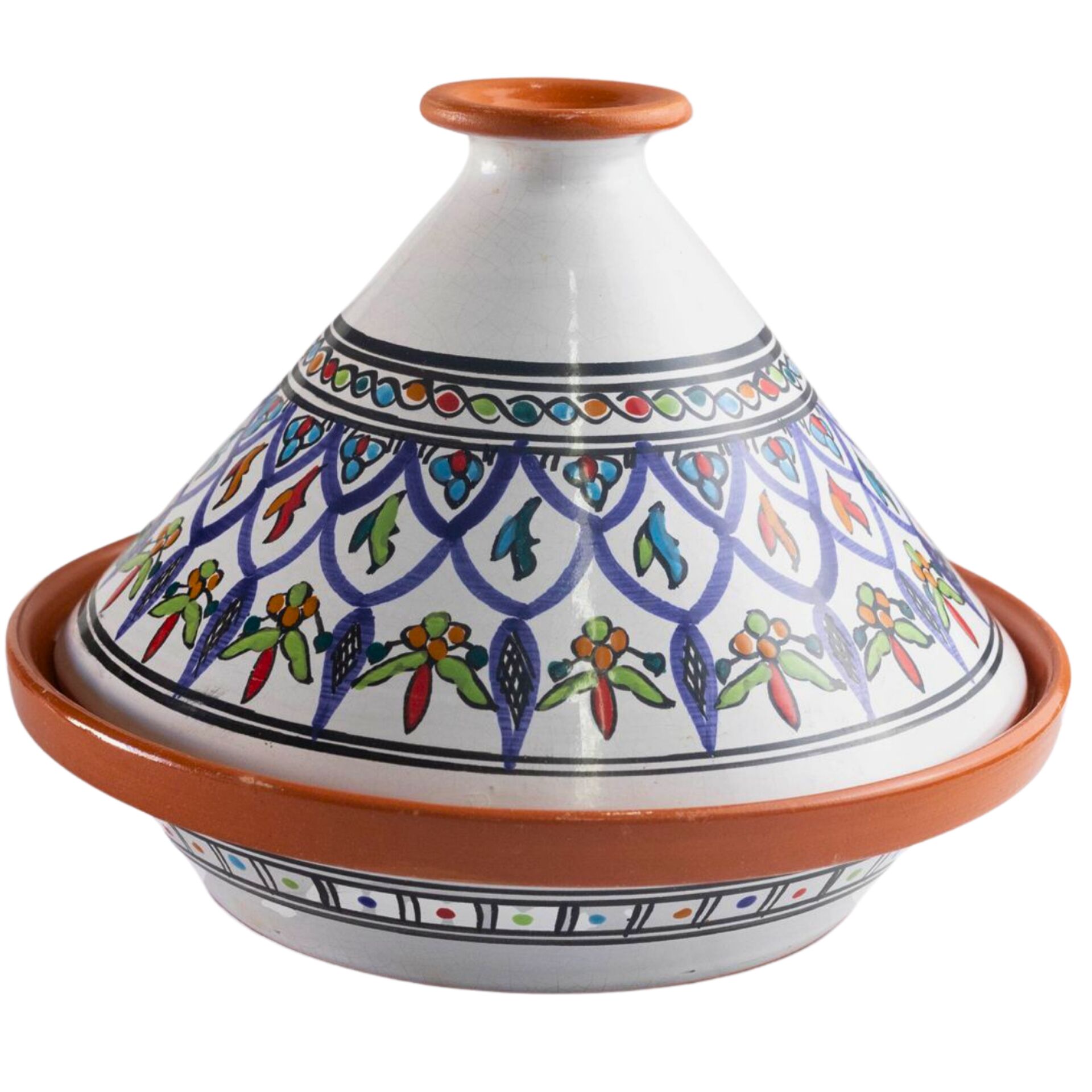 Tajine avec couvercle aux couleurs lumineuses et motifs faits main. Parfait en décoration ou pour présenter vos plats avec convivialité et élégance. Une pièce forte au style méditerranéen raffiné pour événements et réceptions casher.